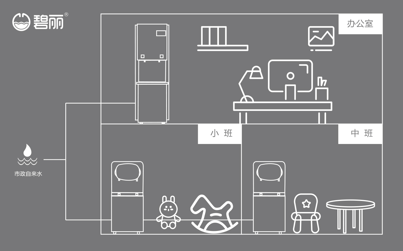 售后維護(hù)、更換濾芯方便,解決因場(chǎng)地限制無(wú)法滿足同時(shí)供應(yīng)多個(gè)飲水點(diǎn)的難題;